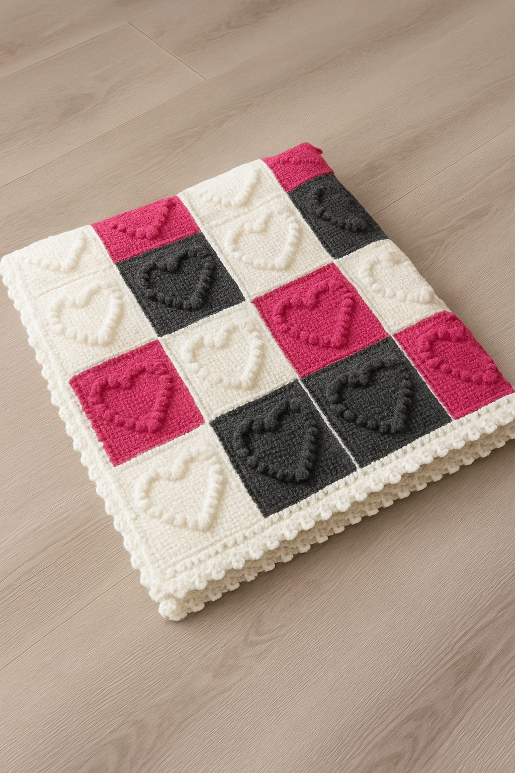 This design is perfect for making a Valentine’s gift, a thoughtful baby shower present, or simply a warm handmade blanket to cherish forever.