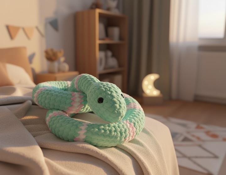 This no-sew amigurumi pattern lets you create a soft, flexible, and adorable snake plush from start to finish — without attaching any extra parts. Perfect for beginners or anyone who loves quick, seamless projects.